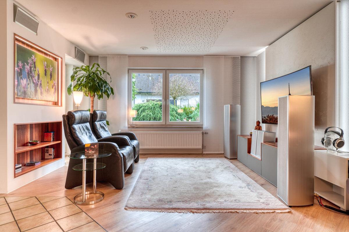 Ein Heimkino, eher unscheinbar im Wohnzimmer realisiert, aber mit herausragender technischer Umsetzung