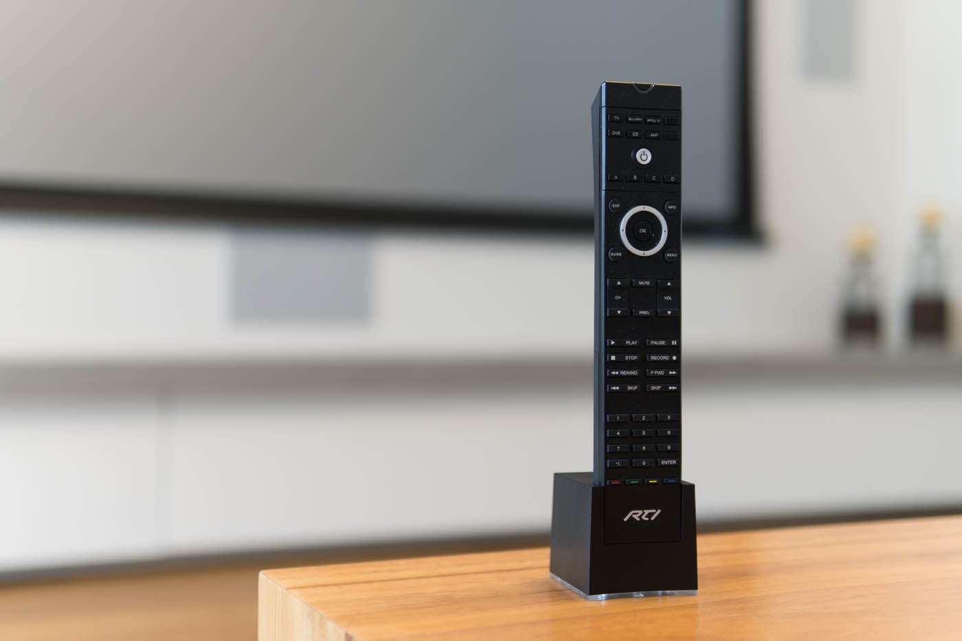 Die funkbasierte RTI-Steuerung ermöglicht eine komfortable und intuitive Bedienung sämtlicher Bild-, Ton- und Lichtkomponenten im gesamten System. Per Knopfdruck lassen sich Heimkino, Musik, Streaming und Beleuchtung individuell steuern – abgestimmt auf jede gewünschte Nutzungssituation.