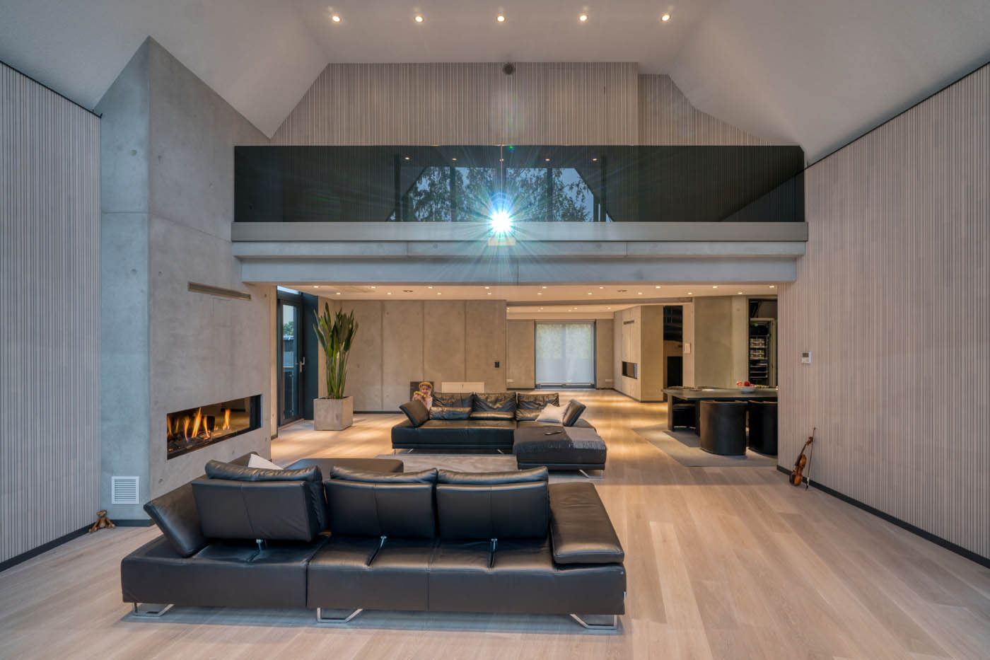 Um genau diesem Effekt entgegenzuwirken, wurde gemeinsam mit dem Bauherrn ein durchdachtes akustisches Gesamtkonzept entwickelt. Ziel war es, die Raumakustik gezielt zu kontrollieren, ohne die architektonische Klarheit und das hochwertige Design des Wohnraums zu beeinträchtigen.