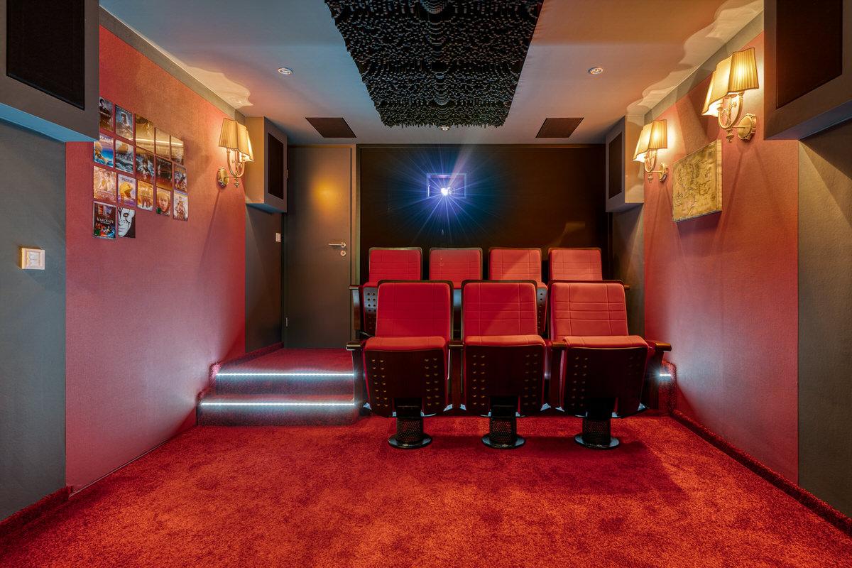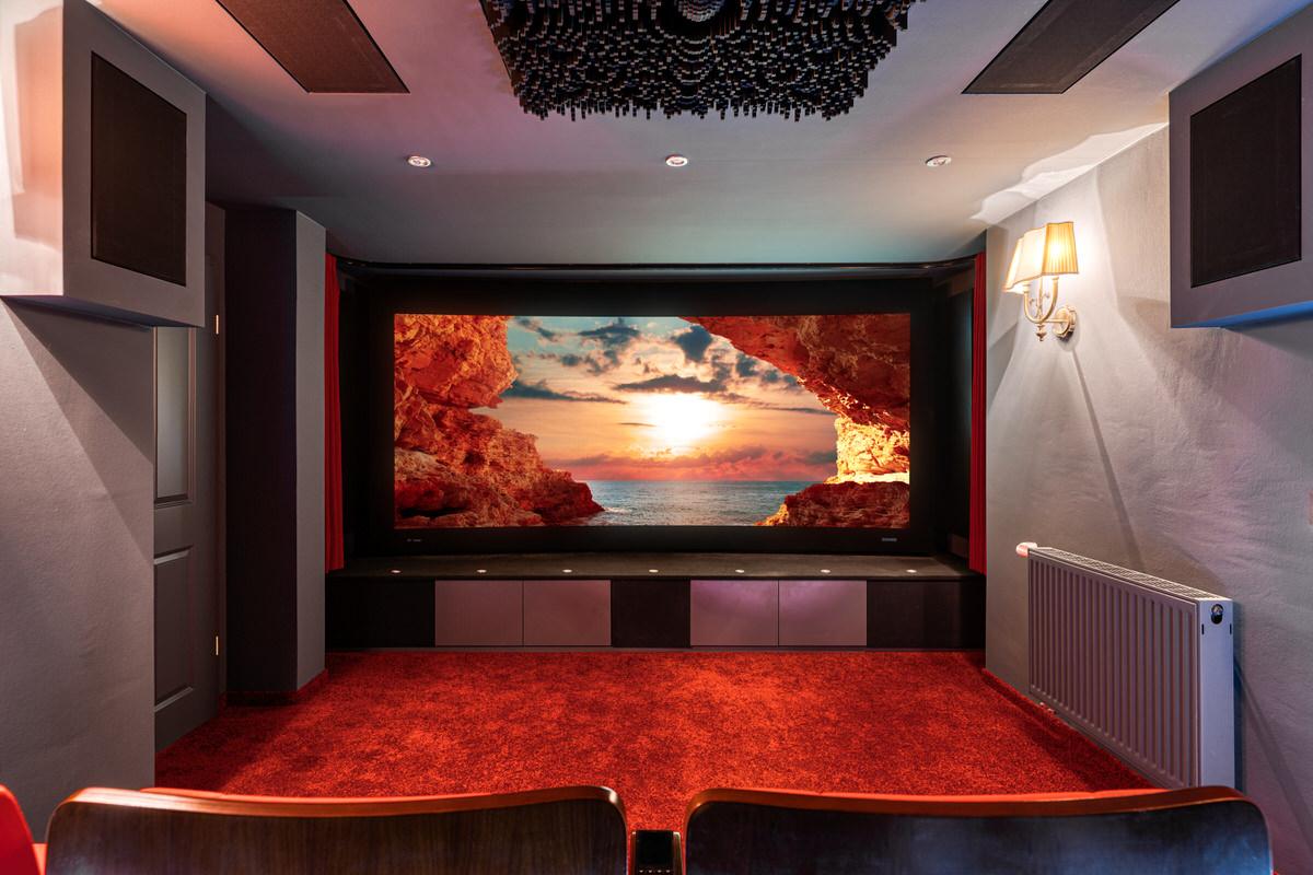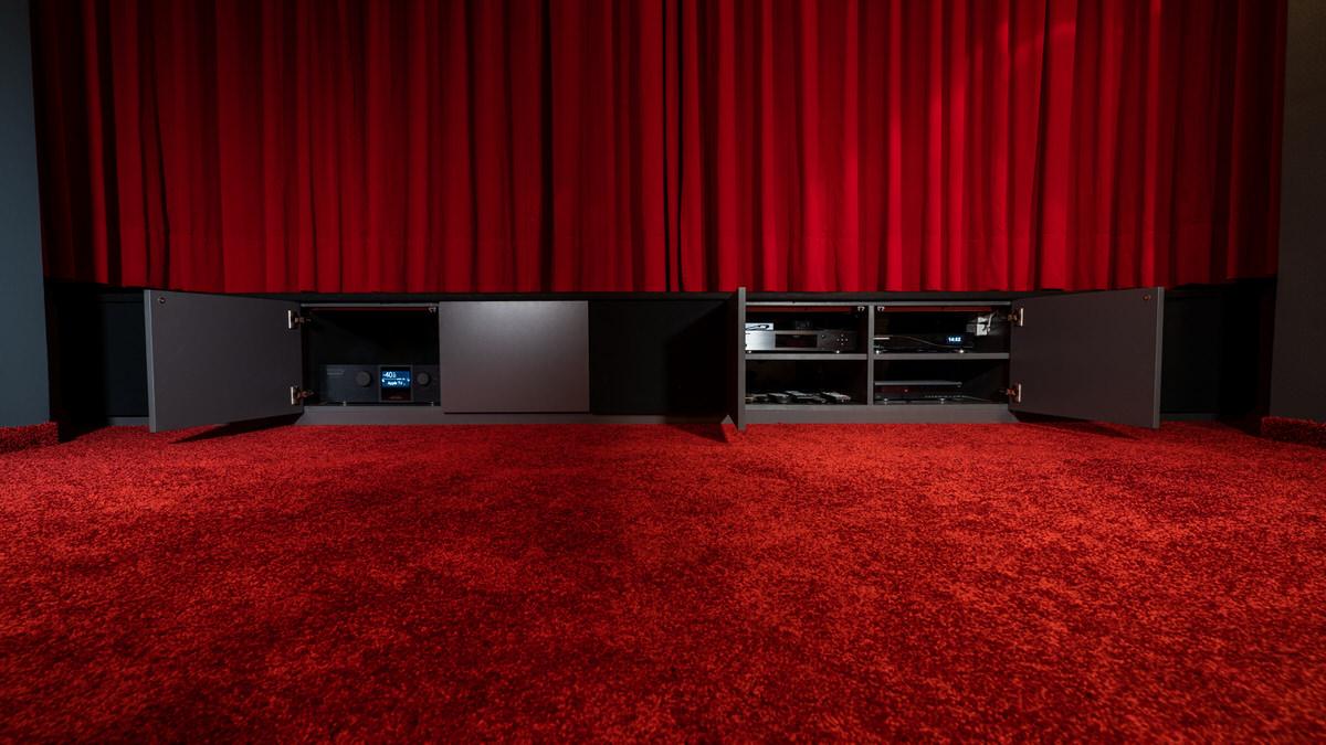 Neben modernster und hochwertiger Heimkino-Technik ist der gesamte Raum mit authentischem Kino-Interieur ausgestattet. Vom roten Samtvorhang, über die roten Kinosessel bis hin zu einem schweren roten Teppich wurde auf jedes Detail geachtet. Wenn man den ehemaligen, ungenutzten Abstellraum betritt, kommt sofort ein beeindruckendes Kino-Feeling auf, gepaart mit der Vorfreude auf ein großes Leinwand-Erlebnis. Aus der unscheinbaren Kammer ist ein wahrer Kinotraum geworden.