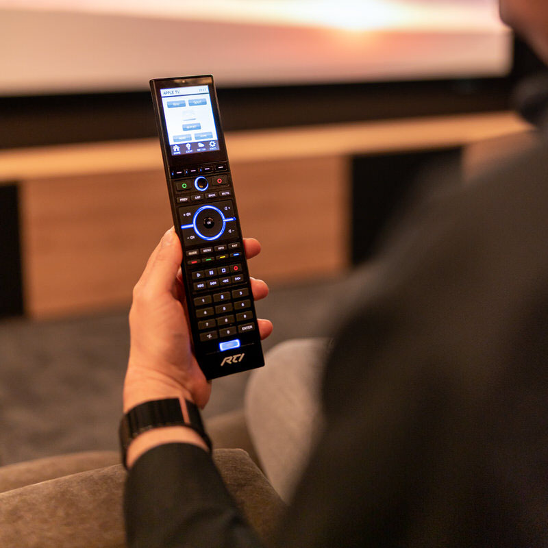 Nun fehlt nur noch eine komfortable „Automatik“ für das Kino, eine integrierte Steuerung aller Komponenten und des Lichts. Hier setzten die Smart Home- und Steuerungs-Spezialisten des HiFi Forums auf ein RTI-Home Automation-System. Beim Betreten des Kinos wird eine vorgewählte Lichtszenerie eingeschaltet. Auf Knopfdruck startet der Kino-Mode mit der Dimmung des Lichts und dem Starten der Bild- und Ton-Komponenten. Dann heißt es „Film ab“ im „Storage Cinema“.