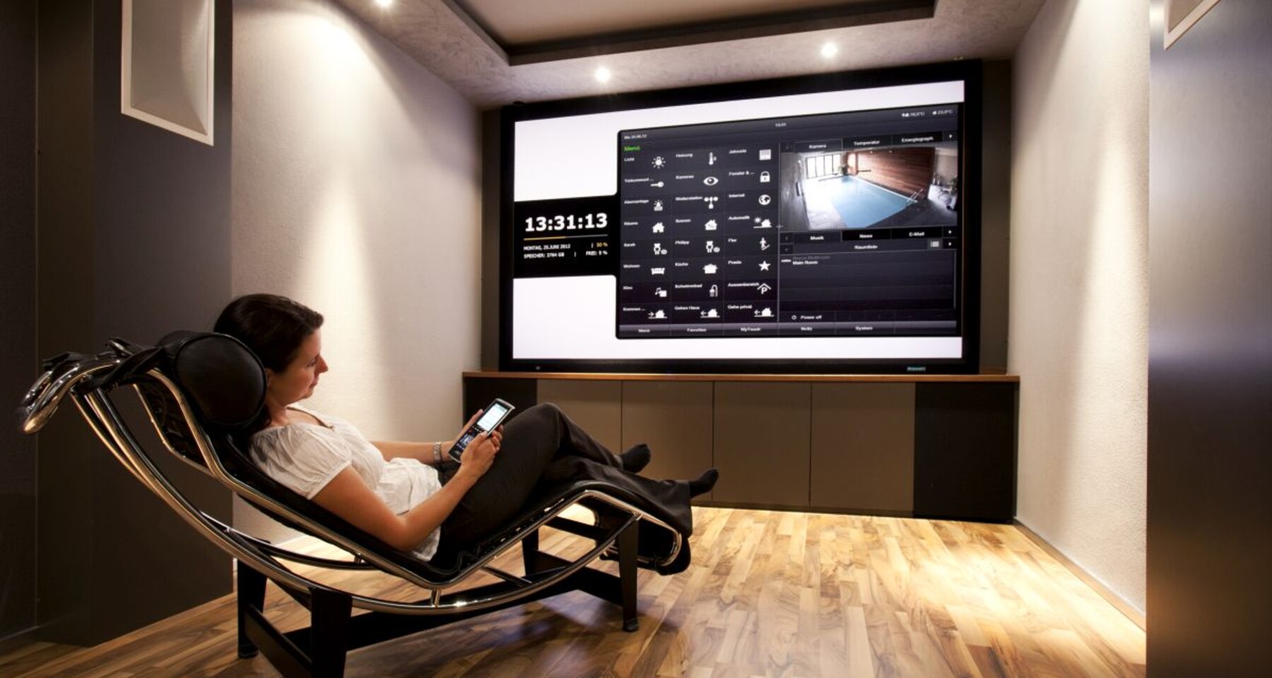 Einfache Bedienung von komplexer Haussteuerung: Z.B. über CONTROL4, RTI oder BASALTE lassen sich Gewerke wie Licht, Jalousie, Lüftung, Heizung und Hausgeräte zentral steuern. Zusätzliche Funktionen sind Lichtszenen speichern und abrufen, Musik hören, Internetanwendungen nutzen und E-Mails anzeigen, Diagramme von Verbräuchen sowie Alarmmeldungen darstellen.
